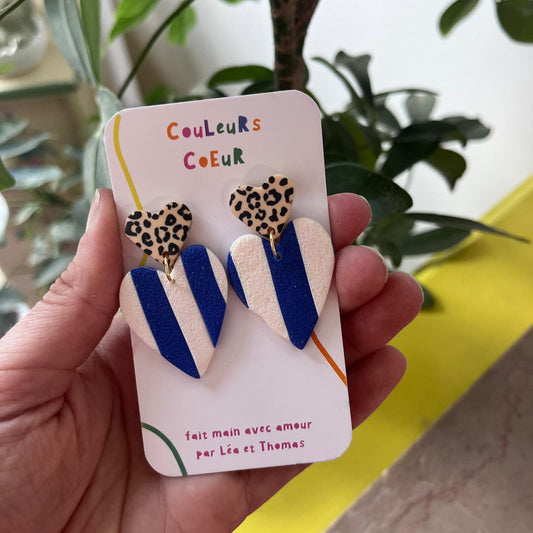 Venise - Rayures Bleues/Blanches - Coeur Léopard