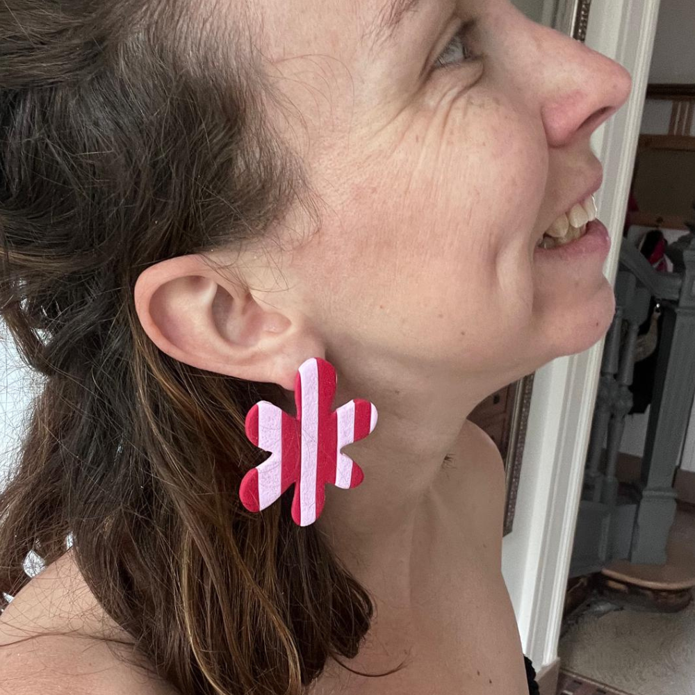 La paire de boucles d'oreilles waouh avec du rouge & du rose.