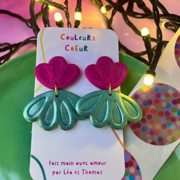 Modèle Fushia & Vert avec une texture irisée sur le côté vert.