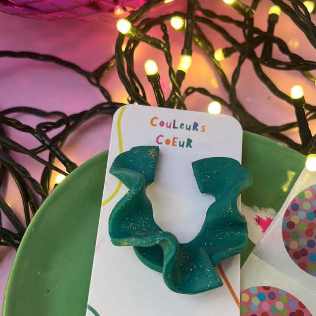 Boucles d'oreilles vertes ondulées. Ce modèle est ondulé à la main & quelques différences de vagues/ tailles peuvent avoir lieu entre les 2 côtés. Un modèle unique & raffiné.